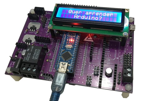 Além disto, a placa conta com um pequeno trimpot para fazer ajustes finos no contraste do display e um barramento para configuração do endereço I2C.